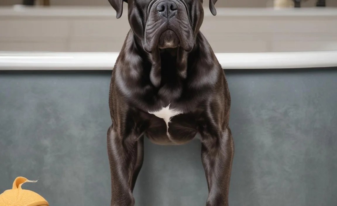 When bathing a Cane Corso, be careful about slipping. Their big bodies can make it easy to fall. Also, use dog shampoo, not human shampoo. It helps keep their skin healthy. Make sure to dry them well so they don’t get cold!
