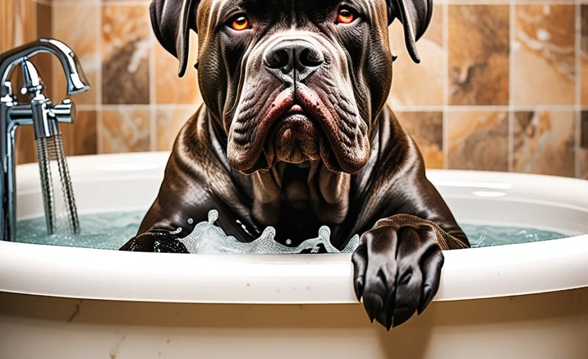 Make the bathing spot cozy! Use lukewarm water and maybe some toys for fun. A happy Cane Corso means less splashing and a more peaceful bath! Remember, the goal is to keep them clean and happy—just try not to get soaked yourself!