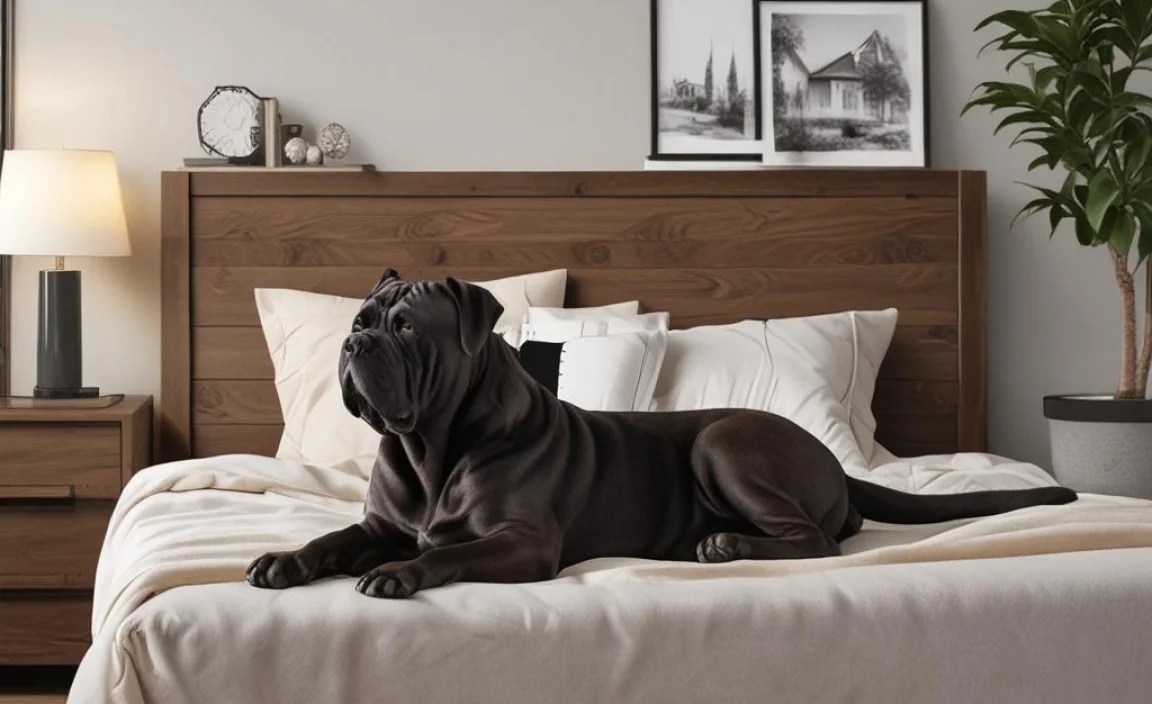 Cane Corsos are big dogs that need space to sleep. If you let them sleep in your bed, they might feel like they are the boss. They are loyal and love to be close to their family. You should train them to know their own bed too. This helps them feel safe and happy!