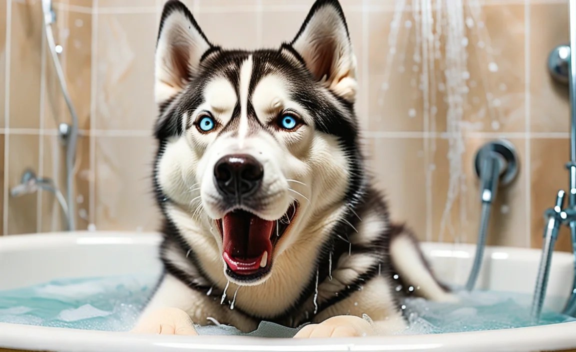 Preparing your husky for a bath. Tips for calming an anxious dog during bath time.