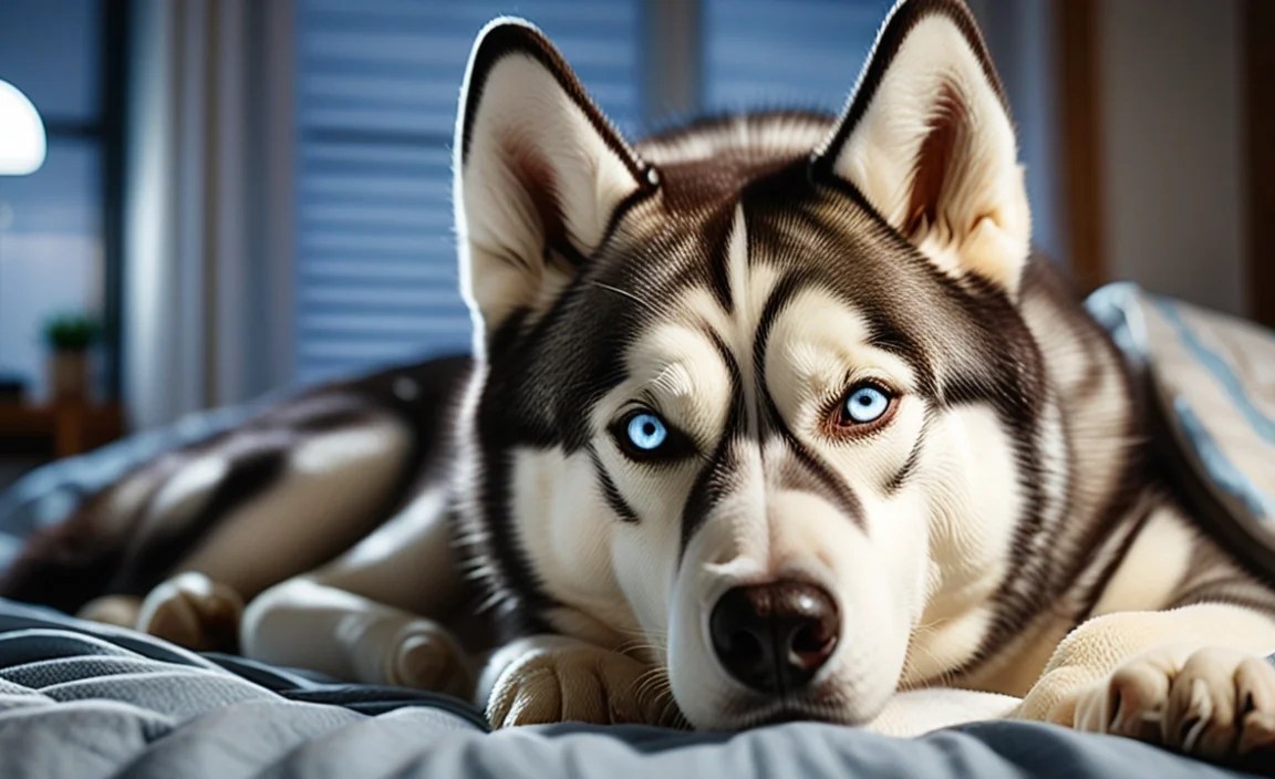 {“@context”:”https://schema.org”,”@type”: “FAQPage”,”mainEntity”:[{“@type”: “Question”,”name”: “What Are The Key Components Of A Relaxing Bedtime Routine For A Husky? “,”acceptedAnswer”: {“@type”: “Answer”,”text”: “To help your husky relax at bedtime, start with a nice walk. This helps them burn off energy. Next, give them some quiet time to calm down. You can cuddle or pet them. Finally, create a cozy sleeping spot with their favorite blanket or bed. This will help your husky feel safe and comfortable.”}},{“@type”: “Question”,”name”: “How Can I Create A Comfortable Sleep Environment For My Husky At Night? “,”acceptedAnswer”: {“@type”: “Answer”,”text”: “To help your husky sleep well at night, find a quiet spot for their bed. Make sure it’s warm and cozy, with a nice blanket. You can dim the lights and keep the room calm. Maybe even play soft music to help them relax. Always check that they have fresh water nearby, too!”}},{“@type”: “Question”,”name”: “What Are Some Calming Activities To Include In My Husky’S Bedtime Routine? “,”acceptedAnswer”: {“@type”: “Answer”,”text”: “To calm your husky before bed, you can try a few fun activities. You might read a quiet story to them. Gentle petting can help them relax, too. You can also play soft music to create a calm atmosphere. Finally, a short walk in the evening can help use up any extra energy.”}},{“@type”: “Question”,”name”: “How Important Is Exercise During The Day For A Husky’S Nighttime Behavior And Sleep Quality? “,”acceptedAnswer”: {“@type”: “Answer”,”text”: “Exercise is super important for huskies during the day. When they play and run, they use up their energy. This helps them sleep better at night. If huskies don’t get enough exercise, they might be restless and wake you up. So, let’s make sure they get plenty of playtime!”}},{“@type”: “Question”,”name”: “Are There Specific Bedtime Rituals That Can Help Reduce Anxiety In Huskies? “,”acceptedAnswer”: {“@type”: “Answer”,”text”: “Yes, there are bedtime rituals that can help calm your husky. You can take them for a short walk to tire them out. Try giving them a cozy blanket or toy to snuggle with. Speak softly and pet them to make them feel safe. A quiet, calm space at bedtime can help them relax.”}}]}