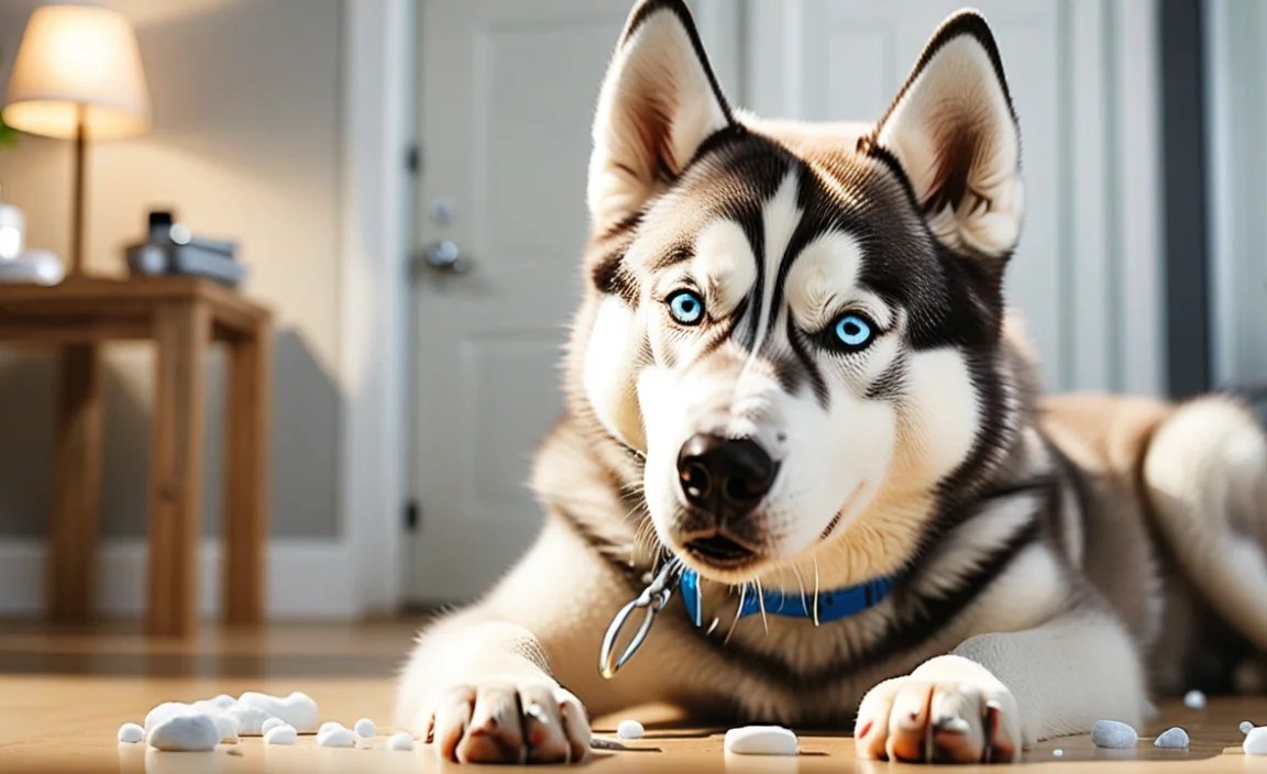 {“@context”:”https://schema.org”,”@type”: “FAQPage”,”mainEntity”:[{“@type”: “Question”,”name”: “What Are The Early Signs Of Dehydration In A Husky? “,”acceptedAnswer”: {“@type”: “Answer”,”text”: “Early signs of dehydration in a husky include dry gums and sticky saliva. You might notice your dog drinking less water than usual. They may also start to act tired or lazy. If your husky’s skin doesn’t spring back when you gently pull it, that’s another sign. Always make sure your husky has plenty of fresh water to drink!”}},{“@type”: “Question”,”name”: “How Can I Prevent Dehydration In My Husky, Especially During Hot Weather? “,”acceptedAnswer”: {“@type”: “Answer”,”text”: “To keep your husky from getting too thirsty in hot weather, give it plenty of fresh water. You should check its water bowl often and refill it if it’s empty. Take your husky for walks in the morning or evening when it’s cooler. You can also put ice cubes in their water to help it stay cold. If your husky seems tired or too hot, let it rest in the shade.”}},{“@type”: “Question”,”name”: “What Are The Potential Health Risks Associated With Untreated Dehydration In Huskies? “,”acceptedAnswer”: {“@type”: “Answer”,”text”: “If huskies don’t drink enough water, they can get very sick. Untreated dehydration can make them feel weak and tired. They might also have trouble walking or get dizzy. Serious problems can happen, like kidney issues or even death. So, it’s super important to always give your husky plenty of fresh water!”}},{“@type”: “Question”,”name”: “How Can I Safely Rehydrate My Husky If I Suspect They Are Dehydrated? “,”acceptedAnswer”: {“@type”: “Answer”,”text”: “If you think your husky is dehydrated, give them clean, fresh water. Encourage them to drink by holding the bowl or pouring water slowly. You can also offer ice cubes or wet dog food to make it more fun. Always watch for signs of serious dehydration, like very dry gums. If they don’t drink or seem very sick, ask a vet for help.”}},{“@type”: “Question”,”name”: “Are There Specific Breeds Of Huskies That Are More Prone To Dehydration Than Others? “,”acceptedAnswer”: {“@type”: “Answer”,”text”: “All huskies can get dehydrated, especially when it’s hot. They are not all the same, but no specific breed is worse than others. Siberian Huskies and Alaskan Huskies can both struggle. It’s important to always give your husky fresh water, no matter the breed. Keeping them cool and hydrated helps them stay healthy.”}}]}